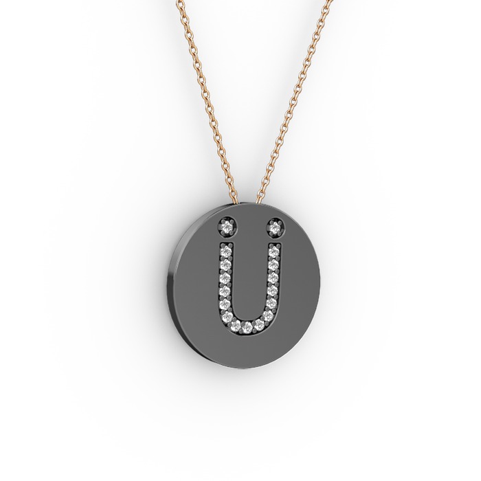 Swarovski 925 ayar siyah rodyum kaplama gümüş kolye (40 cm gümüş rolo zincir)