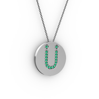 Yeşil kuvars 14 ayar beyaz altın kolye (40 cm gümüş rolo zincir)