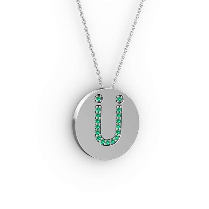 Yeşil kuvars 8 ayar beyaz altın kolye (40 cm beyaz altın rolo zincir)