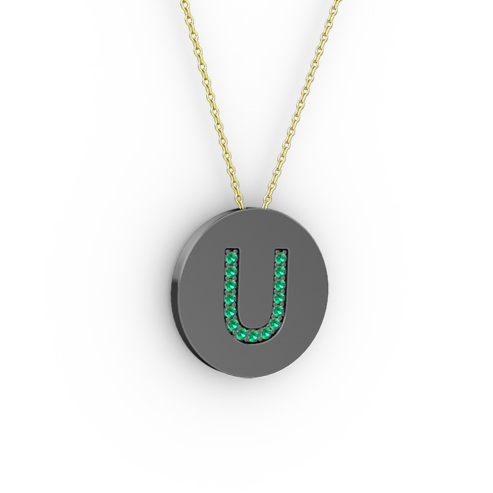Yeşil kuvars 925 ayar siyah rodyum kaplama gümüş kolye (40 cm altın rolo zincir)