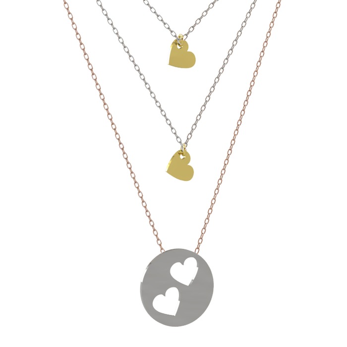 Bir birine olan bağlılığı temsil eden Üçlü Kalp Kolye her zaman sevdiklerinizle beraber olun. Kolyemiz 40,45 ve 50 cm den oluşan üç zincirle tasarlanmıştır. Detaylı Bilgi