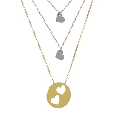 Bir birine olan bağlılığı temsil eden Üçlü Kalp Kolye her zaman sevdiklerinizle beraber olun. Kolyemiz 40,45 ve 50 cm den oluşan üç zincirle tasarlanmıştır. Detaylı Bilgi