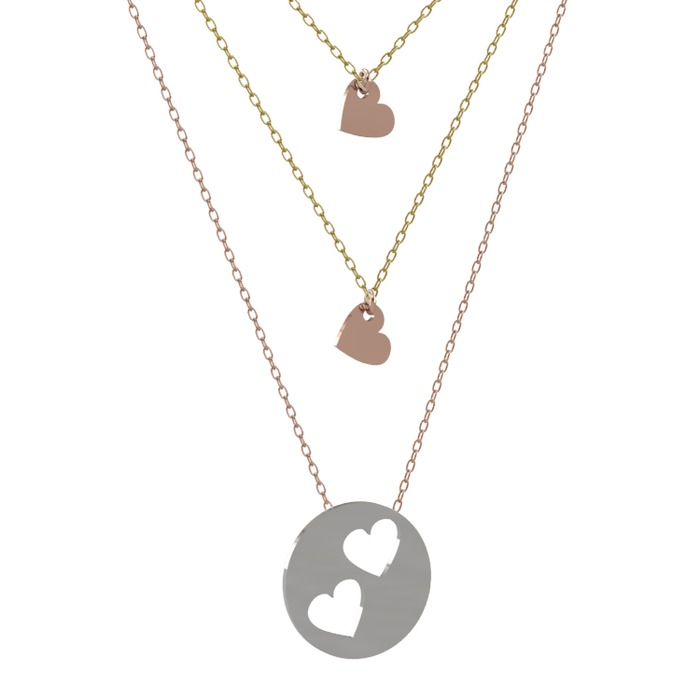 Bir birine olan bağlılığı temsil eden Üçlü Kalp Kolye her zaman sevdiklerinizle beraber olun. Kolyemiz 40,45 ve 50 cm den oluşan üç zincirle tasarlanmıştır. Detaylı Bilgi