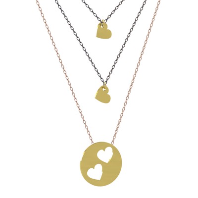 Bir birine olan bağlılığı temsil eden Üçlü Kalp Kolye her zaman sevdiklerinizle beraber olun. Kolyemiz 40,45 ve 50 cm den oluşan üç zincirle tasarlanmıştır. Detaylı Bilgi