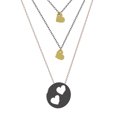 Bir birine olan bağlılığı temsil eden Üçlü Kalp Kolye her zaman sevdiklerinizle beraber olun. Kolyemiz 40,45 ve 50 cm den oluşan üç zincirle tasarlanmıştır. Detaylı Bilgi