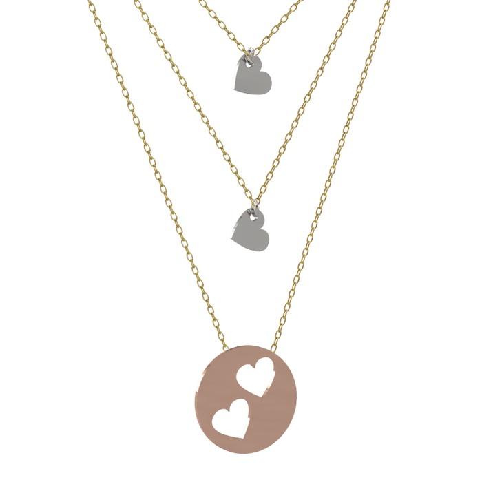 Bir birine olan bağlılığı temsil eden Üçlü Kalp Kolye her zaman sevdiklerinizle beraber olun. Kolyemiz 40,45 ve 50 cm den oluşan üç zincirle tasarlanmıştır. Detaylı Bilgi