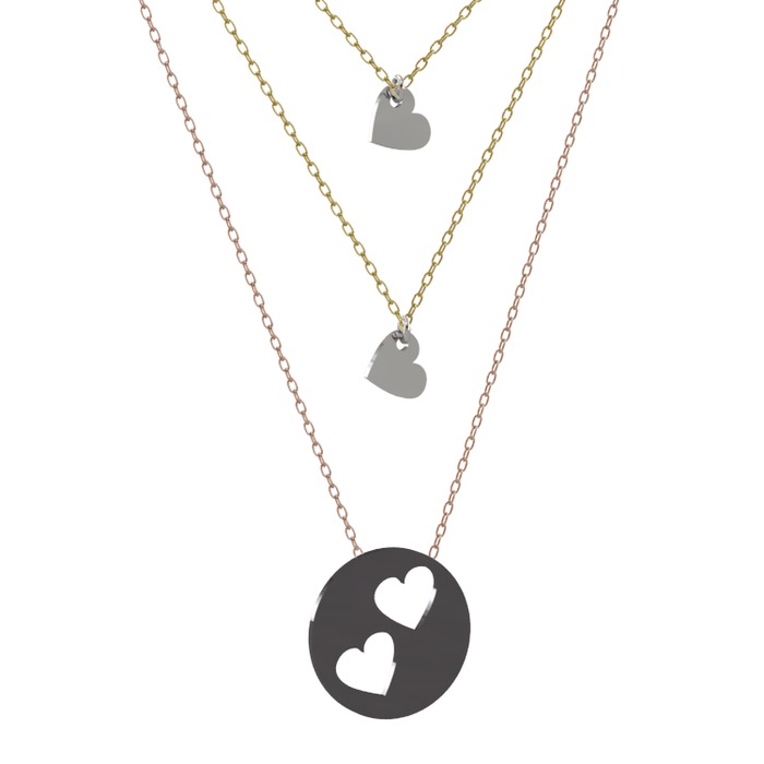Bir birine olan bağlılığı temsil eden Üçlü Kalp Kolye her zaman sevdiklerinizle beraber olun. Kolyemiz 40,45 ve 50 cm den oluşan üç zincirle tasarlanmıştır. Detaylı Bilgi