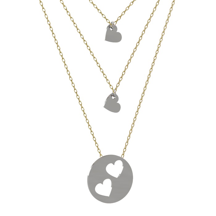 Bir birine olan bağlılığı temsil eden Üçlü Kalp Kolye her zaman sevdiklerinizle beraber olun. Kolyemiz 40,45 ve 50 cm den oluşan üç zincirle tasarlanmıştır. Detaylı Bilgi