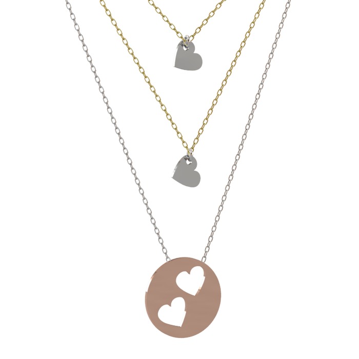 Bir birine olan bağlılığı temsil eden Üçlü Kalp Kolye her zaman sevdiklerinizle beraber olun. Kolyemiz 40,45 ve 50 cm den oluşan üç zincirle tasarlanmıştır. Detaylı Bilgi