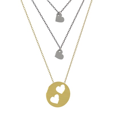 Bir birine olan bağlılığı temsil eden Üçlü Kalp Kolye her zaman sevdiklerinizle beraber olun. Kolyemiz 40,45 ve 50 cm den oluşan üç zincirle tasarlanmıştır. Detaylı Bilgi