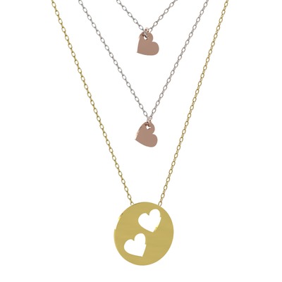 Bir birine olan bağlılığı temsil eden Üçlü Kalp Kolye her zaman sevdiklerinizle beraber olun. Kolyemiz 40,45 ve 50 cm den oluşan üç zincirle tasarlanmıştır. Detaylı Bilgi