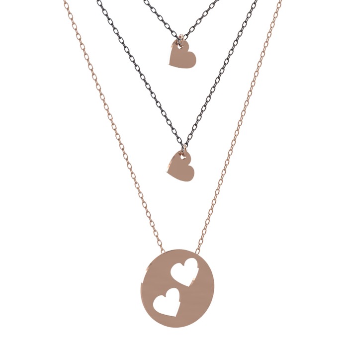 Bir birine olan bağlılığı temsil eden Üçlü Kalp Kolye her zaman sevdiklerinizle beraber olun. Kolyemiz 40,45 ve 50 cm den oluşan üç zincirle tasarlanmıştır. Detaylı Bilgi