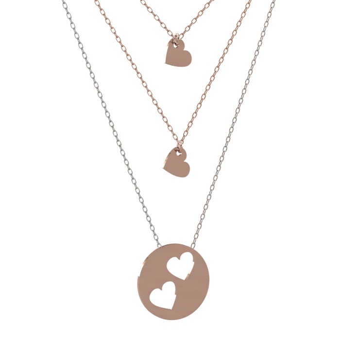 Bir birine olan bağlılığı temsil eden Üçlü Kalp Kolye her zaman sevdiklerinizle beraber olun. Kolyemiz 40,45 ve 50 cm den oluşan üç zincirle tasarlanmıştır. Detaylı Bilgi
