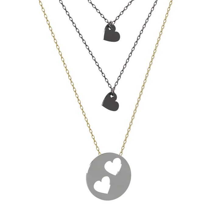 Bir birine olan bağlılığı temsil eden Üçlü Kalp Kolye her zaman sevdiklerinizle beraber olun. Kolyemiz 40,45 ve 50 cm den oluşan üç zincirle tasarlanmıştır. Detaylı Bilgi