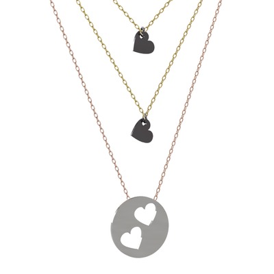 Bir birine olan bağlılığı temsil eden Üçlü Kalp Kolye her zaman sevdiklerinizle beraber olun. Kolyemiz 40,45 ve 50 cm den oluşan üç zincirle tasarlanmıştır. Detaylı Bilgi