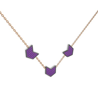 Ametist 925 ayar siyah rodyum kaplama gümüş kolye (40 cm rose altın rolo zincir)
