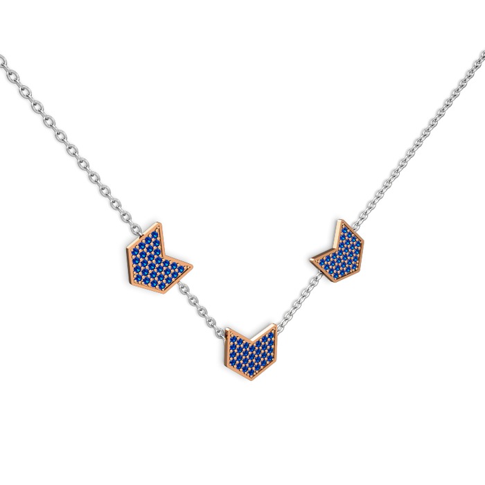 Lab safir 18 ayar rose altın kolye (40 cm beyaz altın rolo zincir)