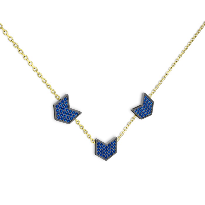 Lab safir 925 ayar siyah rodyum kaplama gümüş kolye (40 cm altın rolo zincir)