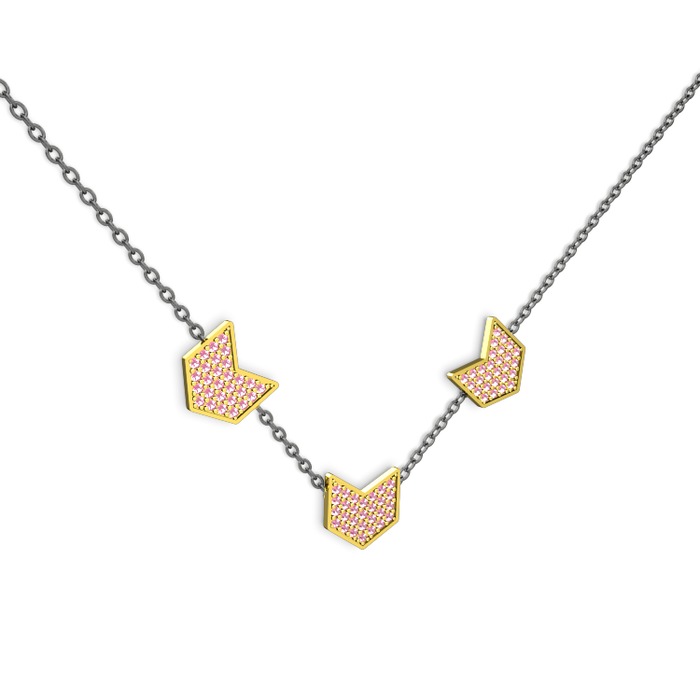 Pembe kuvars 14 ayar altın kolye (40 cm gümüş rolo zincir)