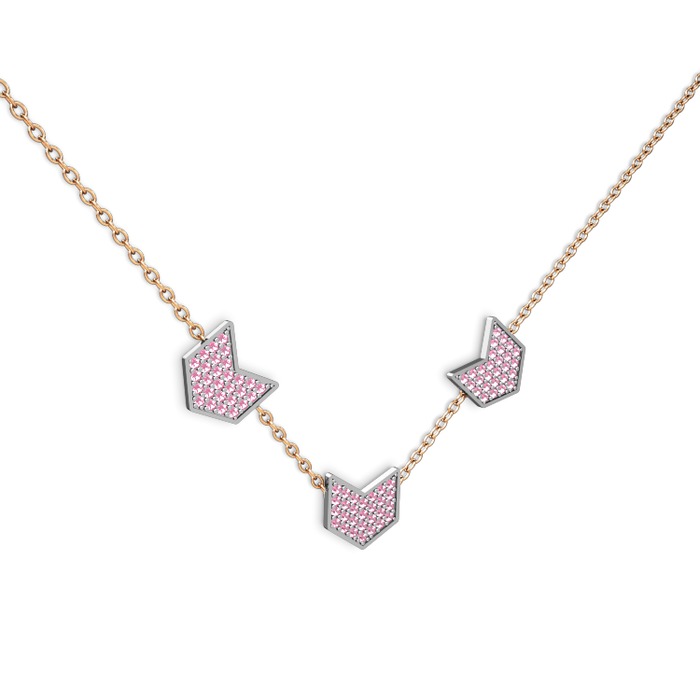 Pembe kuvars 18 ayar beyaz altın kolye (40 cm rose altın rolo zincir)