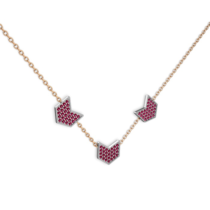 Rodolit garnet 925 ayar gümüş kolye (40 cm rose altın rolo zincir)