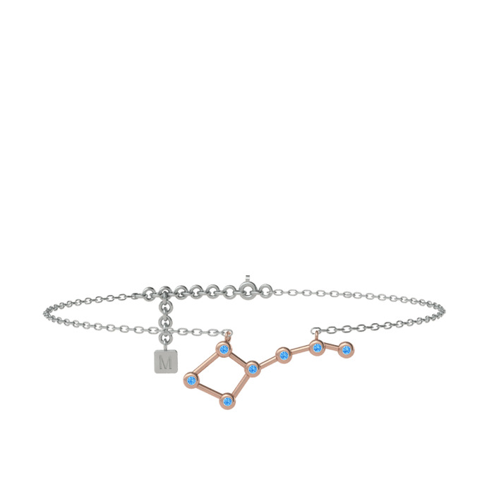 Akuamarin 14 ayar rose altın bilezik (20 cm beyaz altın rolo zincir)