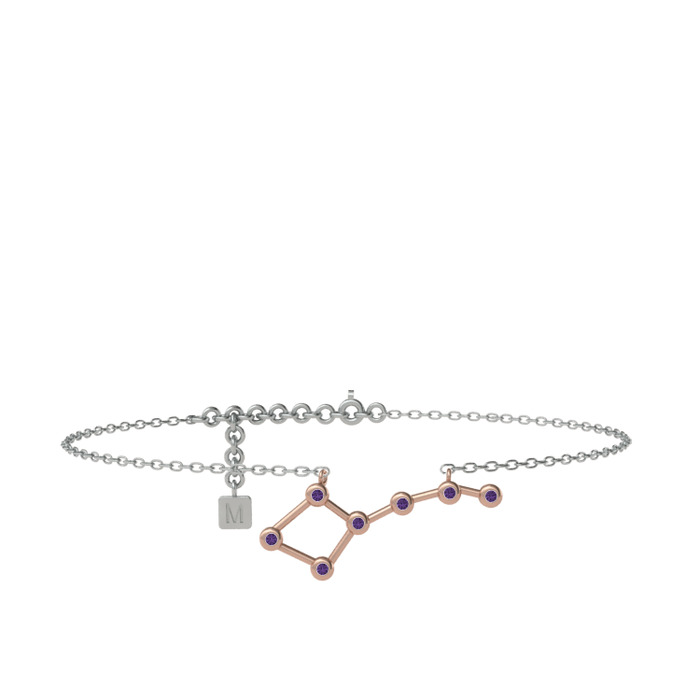 Ametist 14 ayar rose altın bilezik (20 cm gümüş rolo zincir)