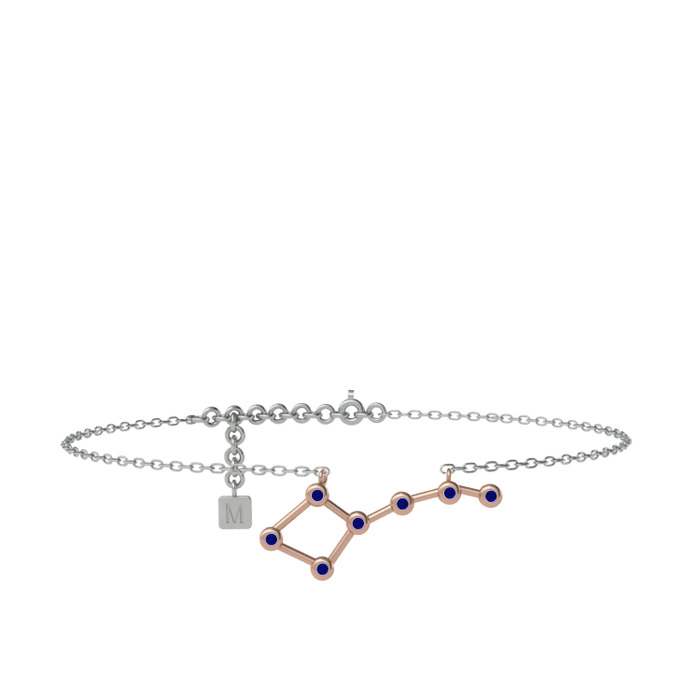 Lab safir 925 ayar rose altın kaplama gümüş bilezik (20 cm beyaz altın rolo zincir)