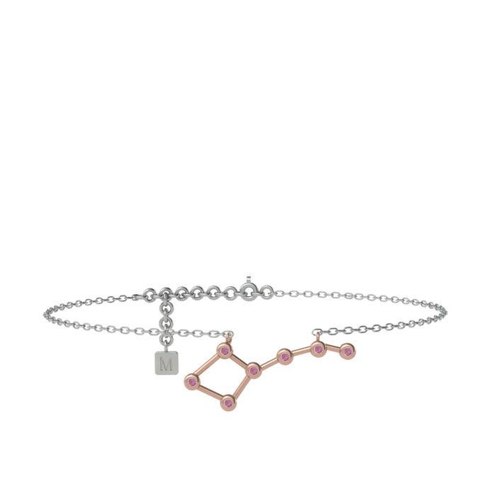Pembe kuvars 18 ayar rose altın bilezik (20 cm beyaz altın rolo zincir)