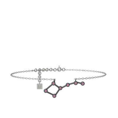 Pembe kuvars 925 ayar siyah rodyum kaplama gümüş bilezik (20 cm beyaz altın rolo zincir)