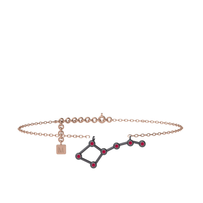 Rodolit garnet 925 ayar siyah rodyum kaplama gümüş bilezik (20 cm rose altın rolo zincir)