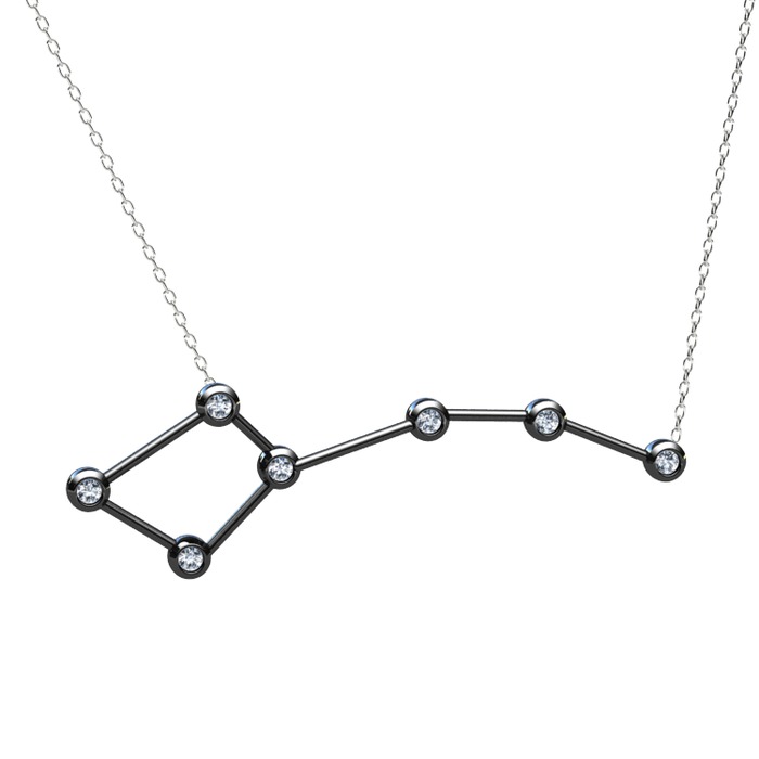 Ursa Minor Kolye - Beyaz zirkon 925 ayar siyah rodyum kaplama gümüş kolye (40 cm gümüş rolo zincir)
