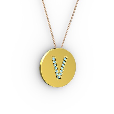 Akuamarin 18 ayar altın kolye (40 cm gümüş rolo zincir)