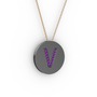 Ametist 925 ayar siyah rodyum kaplama gümüş kolye (40 cm rose altın rolo zincir)