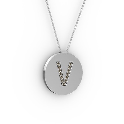 Dumanlı kuvars 14 ayar beyaz altın kolye (40 cm beyaz altın rolo zincir)