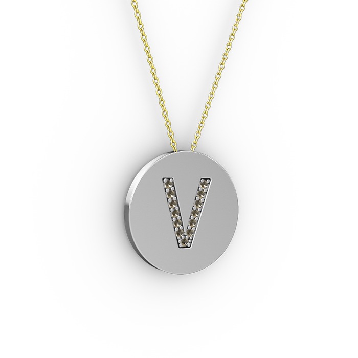 Dumanlı kuvars 18 ayar beyaz altın kolye (40 cm altın rolo zincir)