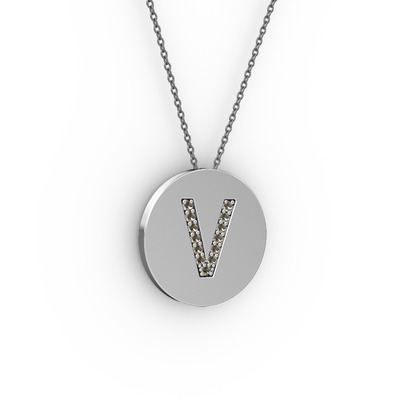 Dumanlı kuvars 8 ayar beyaz altın kolye (40 cm gümüş rolo zincir)