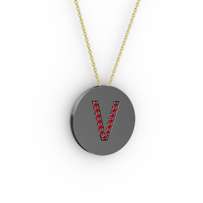 Garnet 925 ayar siyah rodyum kaplama gümüş kolye (40 cm altın rolo zincir)