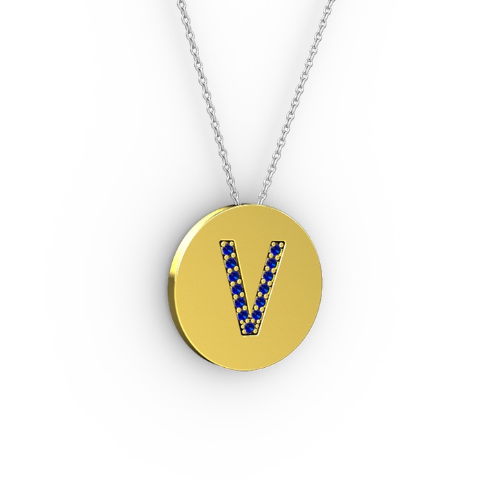 Lab safir 14 ayar altın kolye (40 cm beyaz altın rolo zincir)