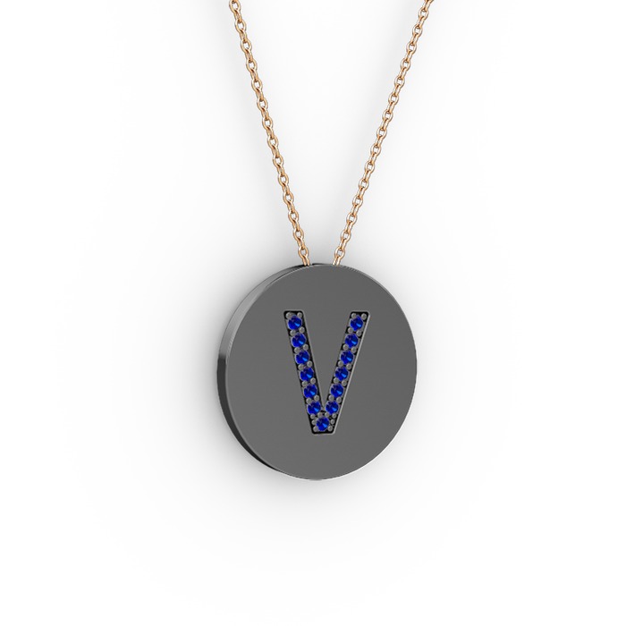 Lab safir 925 ayar siyah rodyum kaplama gümüş kolye (40 cm gümüş rolo zincir)