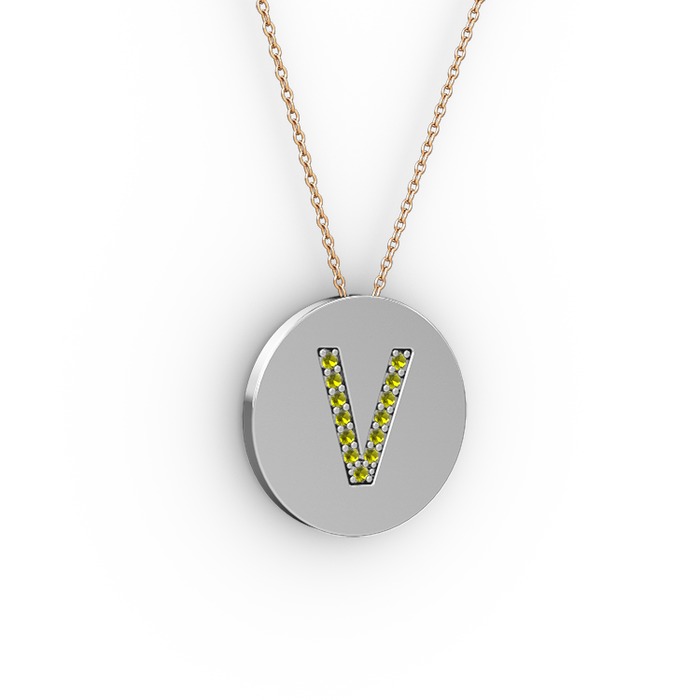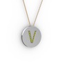 Peridot 8 ayar beyaz altın kolye (40 cm rose altın rolo zincir)