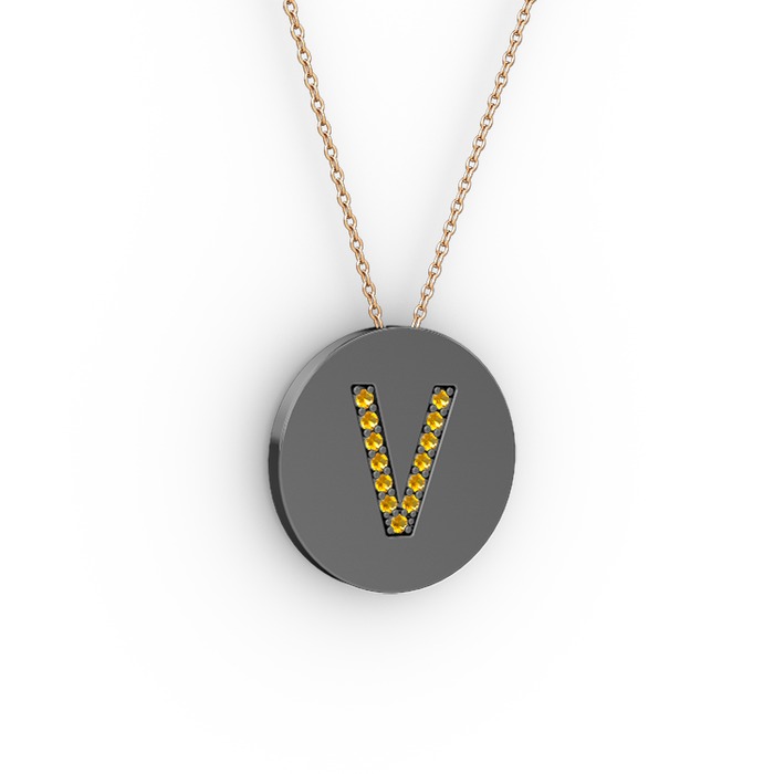 Sitrin 925 ayar siyah rodyum kaplama gümüş kolye (40 cm gümüş rolo zincir)