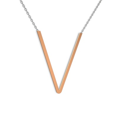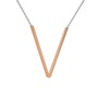V Kolye - 925 ayar rose altın kaplama gümüş kolye (40 cm beyaz altın rolo zincir)