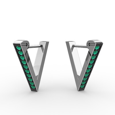 Kök zümrüt 8 ayar beyaz altın küpe