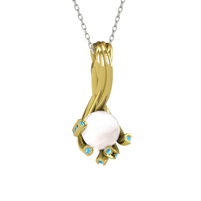 Inci ve akuamarin 14 ayar altın kolye (40 cm beyaz altın rolo zincir)