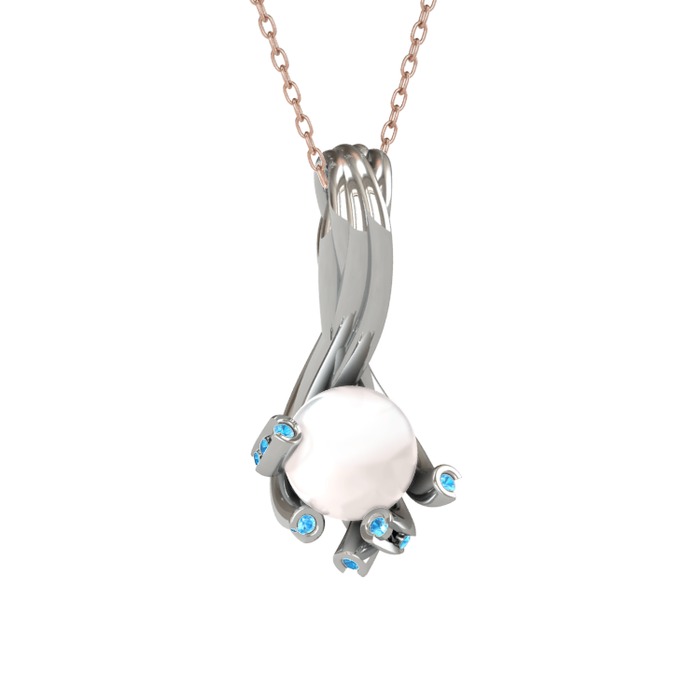 Inci ve akuamarin 14 ayar beyaz altın kolye (40 cm rose altın rolo zincir)