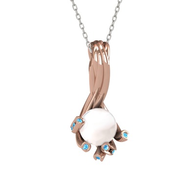 Inci ve akuamarin 925 ayar rose altın kaplama gümüş kolye (40 cm beyaz altın rolo zincir)