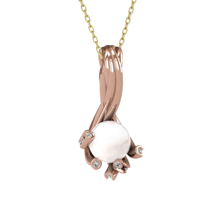 Inci ve beyaz zirkon 14 ayar rose altın kolye (40 cm altın rolo zincir)
