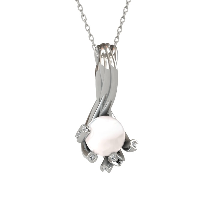 Inci ve beyaz zirkon 8 ayar beyaz altın kolye (40 cm beyaz altın rolo zincir)