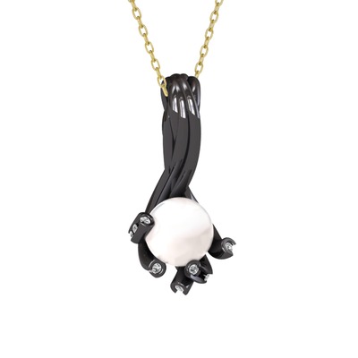 Inci ve beyaz zirkon 925 ayar siyah rodyum kaplama gümüş kolye (40 cm altın rolo zincir)